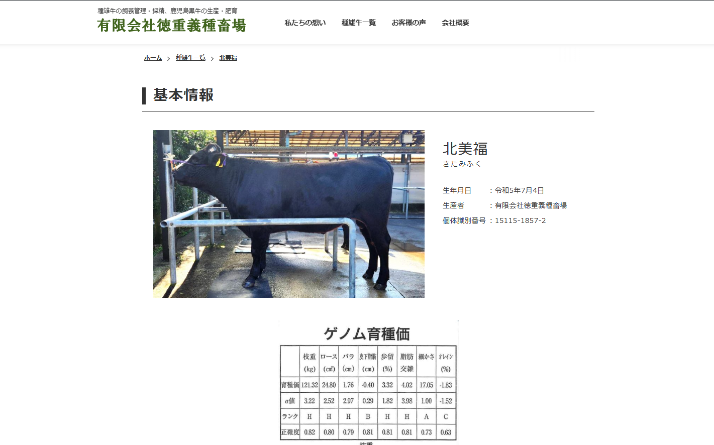 ホームお知らせ一覧お知らせ種雄牛ページに「北美福」追加しました 種雄牛ページに「北美福」追加しました 2025.01.17 お知らせ 平素は格別のお引き立てを賜り誠にありがとうございます。 種雄牛一覧に新たに「北美福」を追加公開いたしました。 前の記事 ウェブサイトを公開しました 次の記事 桜百合の枝肉成績、花久勝の母体枝肉成績を追加しました。 お知らせ一覧に戻る